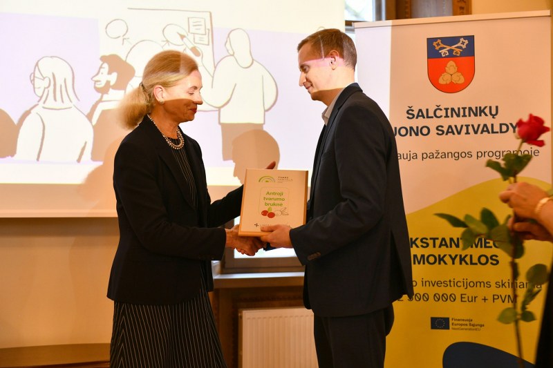 Esame apdovanoti už aktyvų tvarumo idėjų plėtojimą ir bendruomeniškumo stiprinimą. Mes visi kartu ne tik įgyvendiname praktinius sprendimus, bet ir kuriame aiškią tvarumo kultūrą, matomą mokinių, tėvų ir mokytojų veiklose.