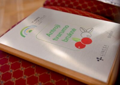 Konferencijos metu mūsų gimnazijos Direktorei buvo iškilmingai įteiktas projekto „Tvari mokykla”