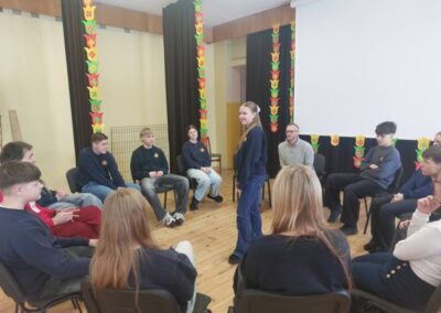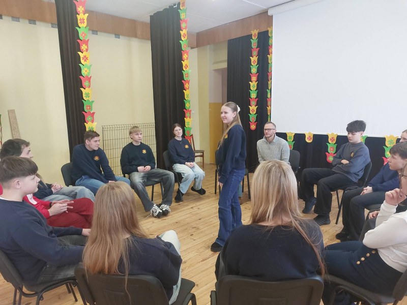🤩Šiandien vyko pirmas profesionalių aktorių susitikimas su mūsų jaunuoliais, kurio metu per aktyvius žaidimus👫👫mokiniai susipažino su aktoriais Roku Petrausku ir Artūru Dubaka, mokiniams buvo paaiškinta, kaip ir kokiu būdu jie atskleis savo kūrybinius gebėjimus🙋🏼‍♀️🙋‍♂️, o taip pat jau buvo bandyta kurti savo pirmas eiles📝.